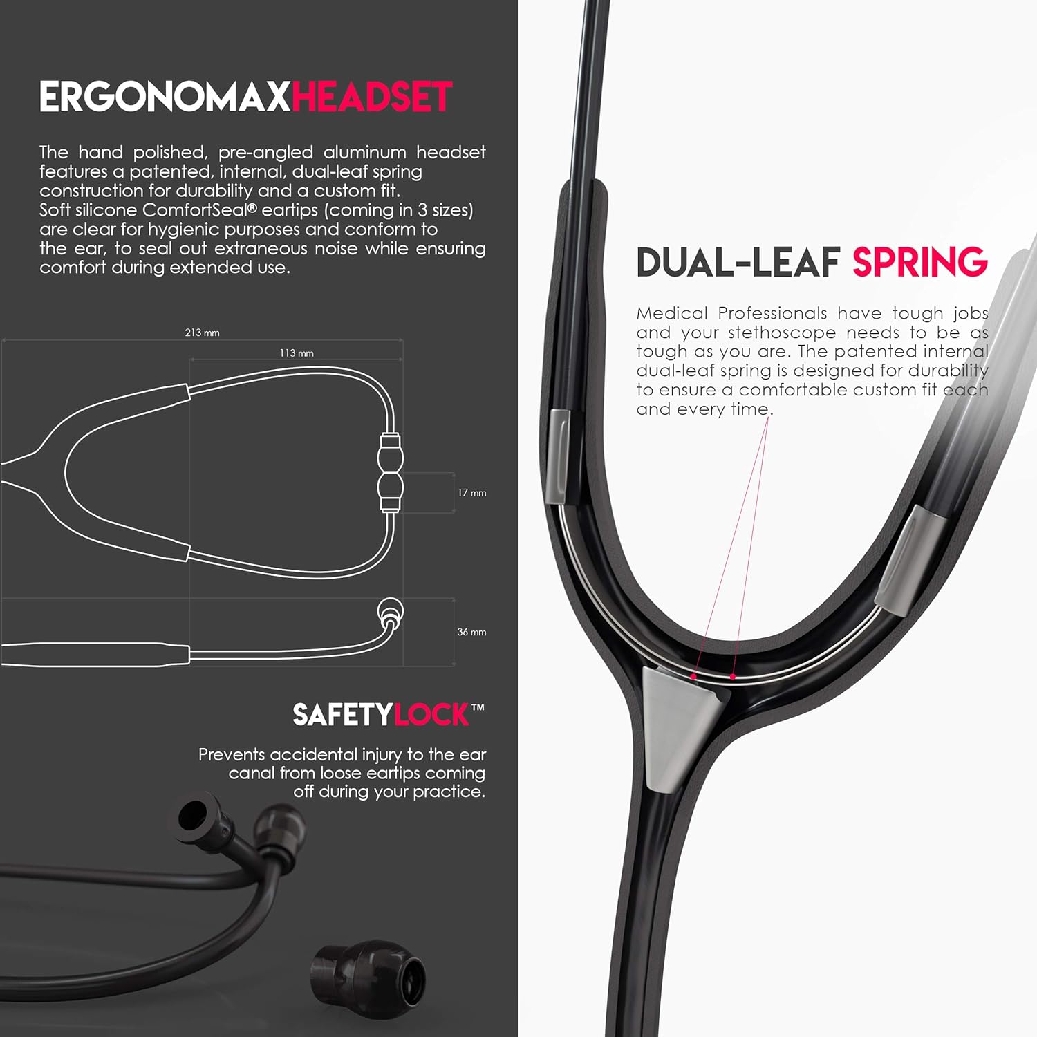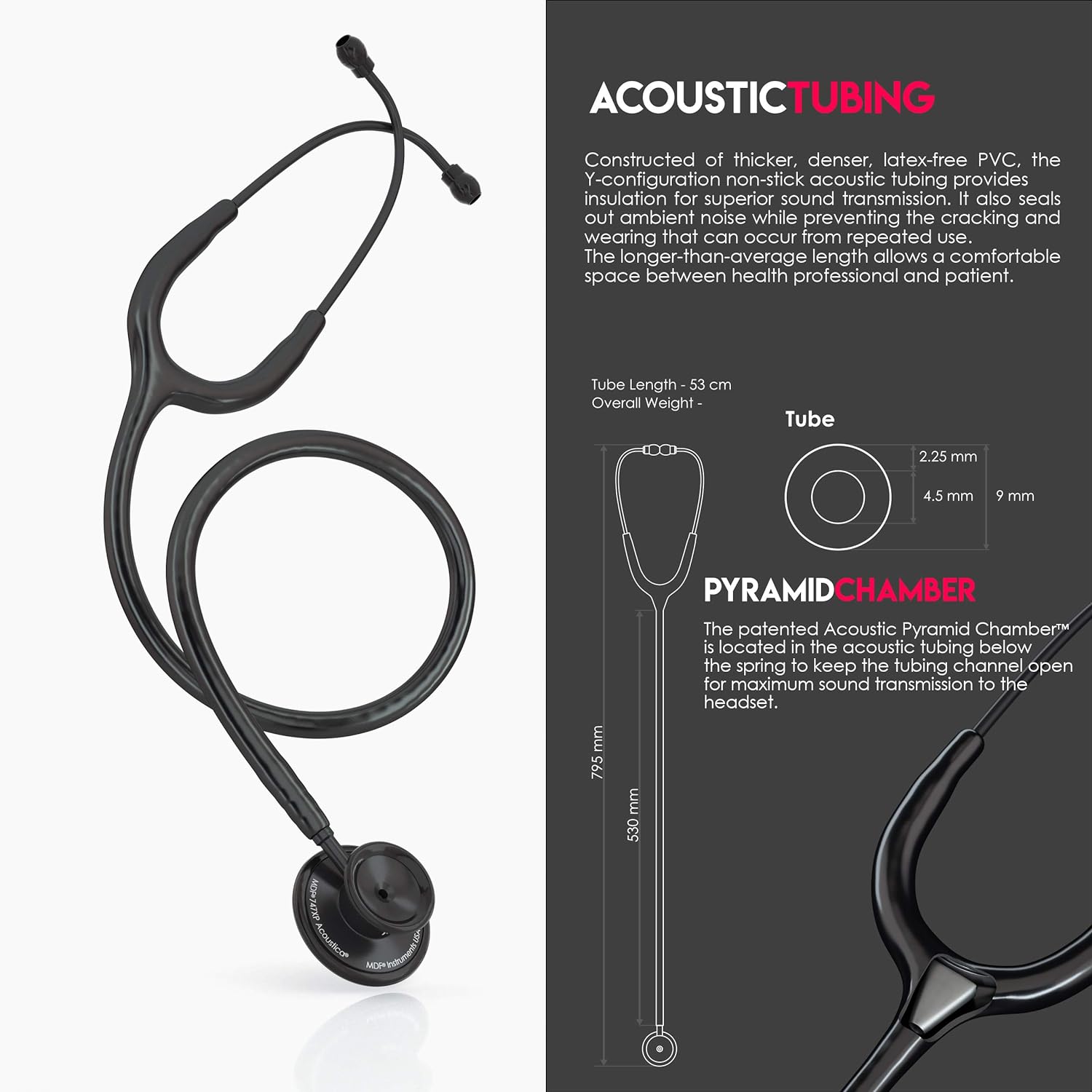- Acoustic Tubing: The acoustic tubing is constructed from latex-free, high-density PVC, ensuring optimal sound transmission and durability.