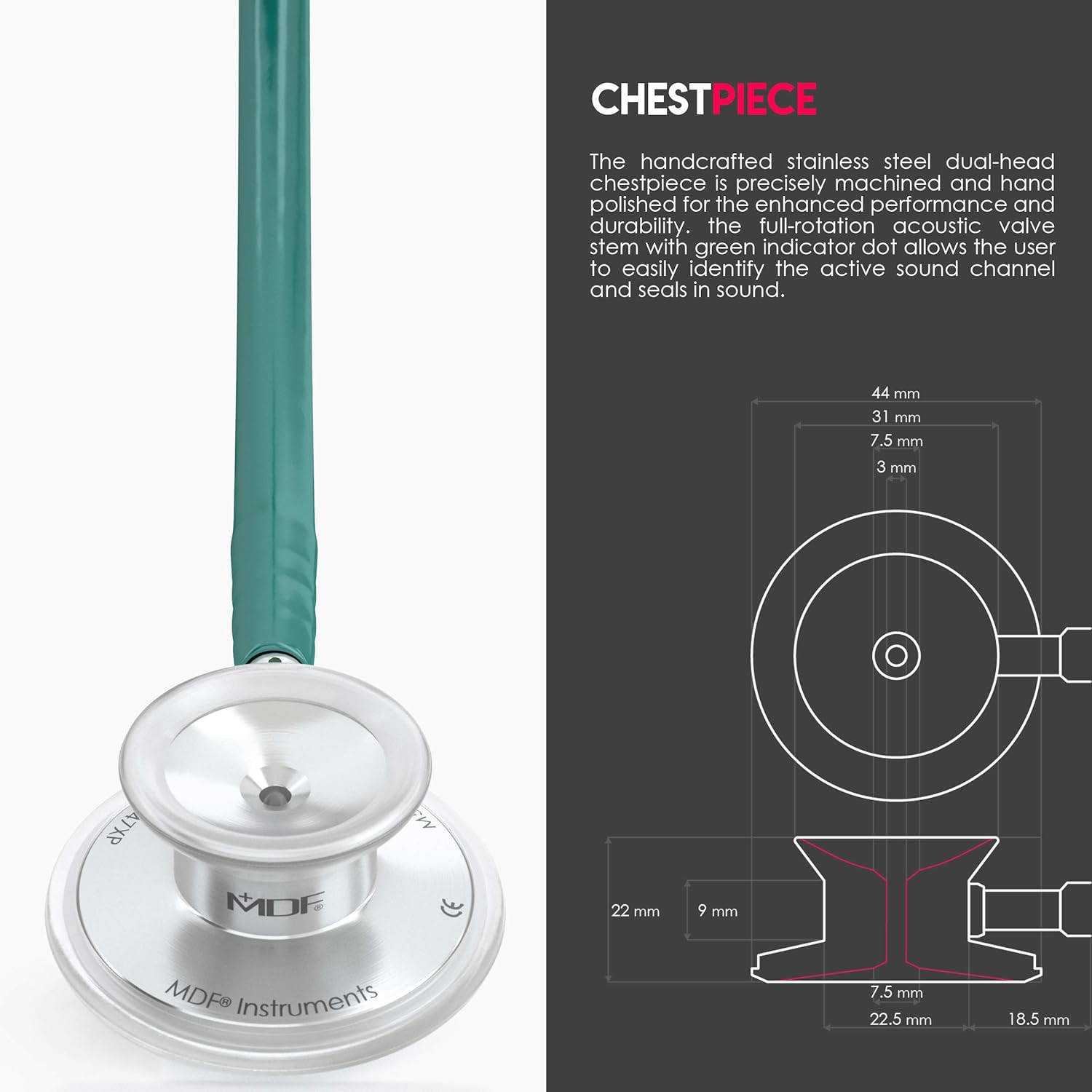 Acoustic Excellence: - Dual-Head Chestpiece: The stainless steel, dual-head chestpiece features both a bell and a diaphragm, allowing you to switch between low and high-frequency sounds with ease.