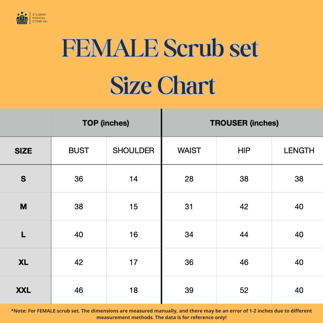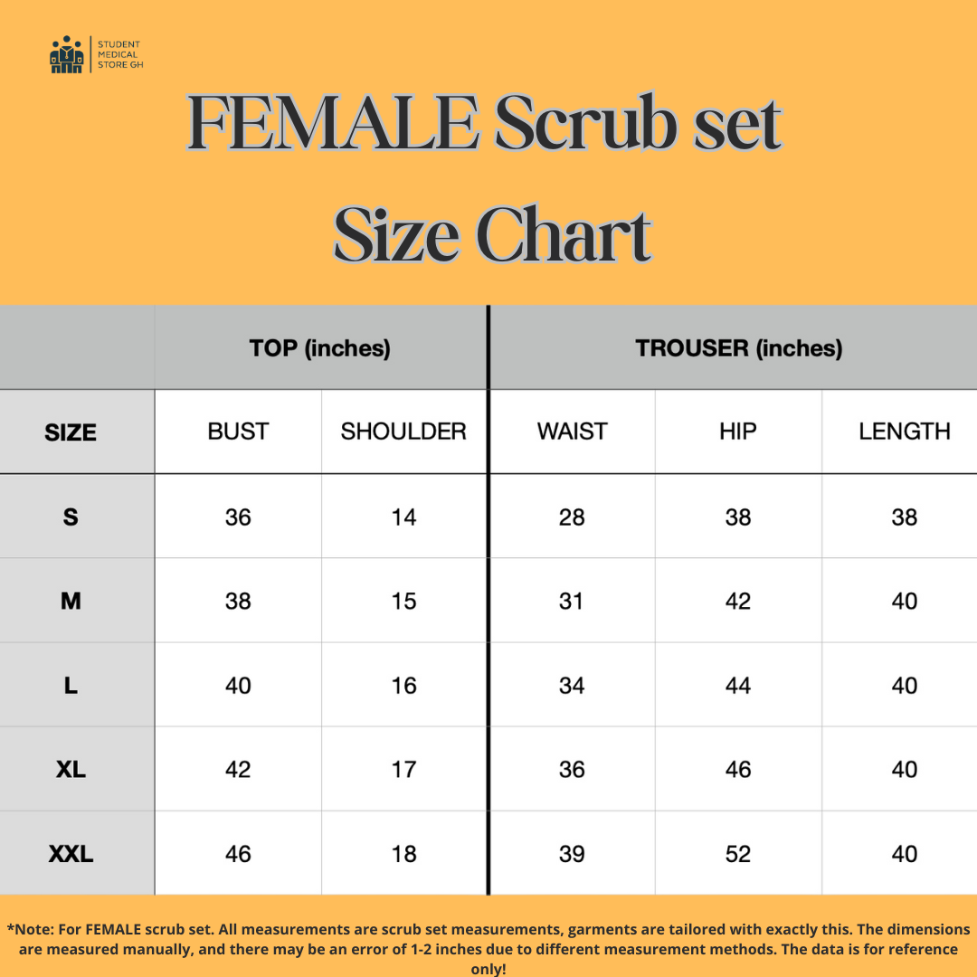 Note: Colors may not be as exact in hue as seen in sample images thus allow for a little lighter or deeper shade. Refer to last image for original hue of  scrub apparel and size guide for females(2nd image in product gallery).