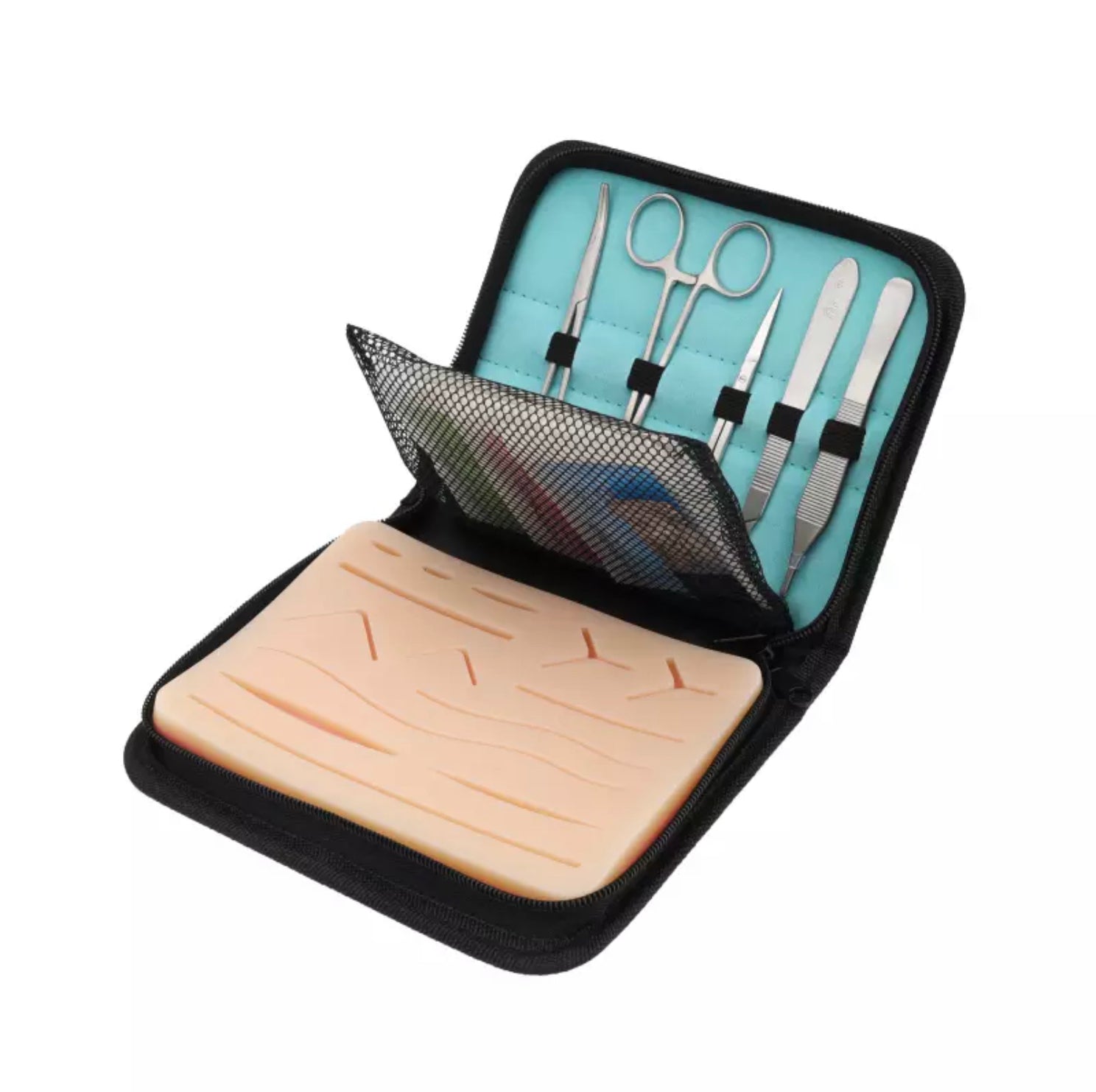 Suture pad has 3 layers = skin, fat, muscle with 14 pre-cuts